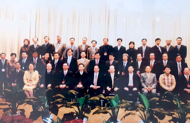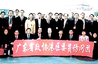 统战部副部长梁金泉与政协港区委员合照.广东省政协常委、 东莞时富花园董事长朱正贤(前排左八)副董事长朱颖恒(后 排左九)