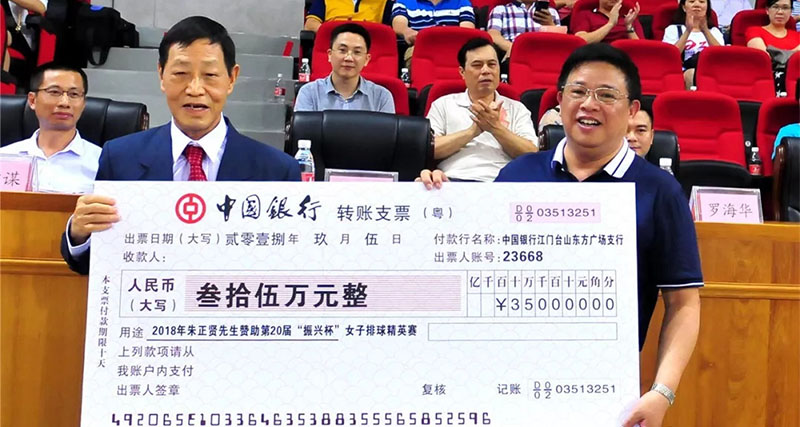 至此,每年秋季,朱正贤先生都会全力资助“排球之乡”——广东台山举办“振兴杯”排球精英赛及其它赛事,台山排球的美誉也吸引了来自全世界各地多个排球队前来一较高下。前来观看的台山市民说,台山排球事业有今天的成就,全得益于“振兴杯”精英赛事多年来的持续举办,这不是台山的骄傲,更是中国的骄傲。愿将心血扶桑梓,化作莹虫照后人,说的正是朱正贤先生这种愿以毕生成就反哺家国、回报社会的善人。